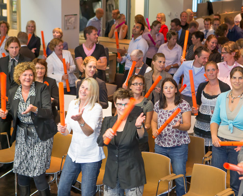 Organiseert u een teambuildingsactiviteit? Naast losse presentaties en workshops stellen wij ook (dag)programma’s samen. Denk bijvoorbeeld aan een spectaculaire opening, gevolgd door een training gericht op communicatie en een workshop waarbij de focus ligt op samenwerking. Doordat we de verschillende onderdelen op elkaar afstemmen,is er een betere samenhang en is het makkelijker om de aandacht van de deelnemers vast te houden. Hieronder enkele dagprogramma’s ter inspiratie.